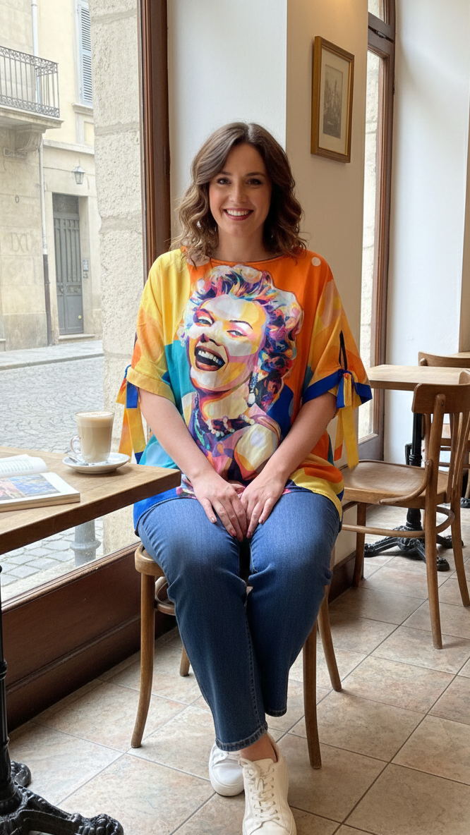 La Blusa Comic es la prenda definitiva para quienes buscan un estilo divertido, original y lleno de color. Con tres estampados inspirados en el arte pop, esta blusa se convierte en la protagonista indiscutible de tu outfit. Su diseño holgado y sus detalles femeninos la hacen tan cómoda como favorecedora.